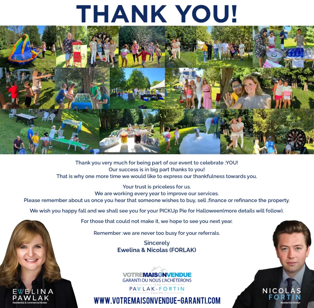 Éric Brochu2024-02-06Quelques jours après la mise en marché de ma maison avec l’équipe Du Proprio, j’ai reçu un appel d’une courtière immobilier de Remax, Ewelina Pawlak. Une courtière immobilier rassurante qui dégage une énergie positive et un bon sens des affaires. Rapidement la connexion c’est créé entre nous, moins de 2 semaines s’était écoulé qu’une visite libre permettait de réaliser ma vente et d’atteindre mes objectifs financiers. Merci Ewelina et toute l’équipe qui m’on aidé tout au long de cette aventure.Trustindex verifies that the original source of the review is Google.