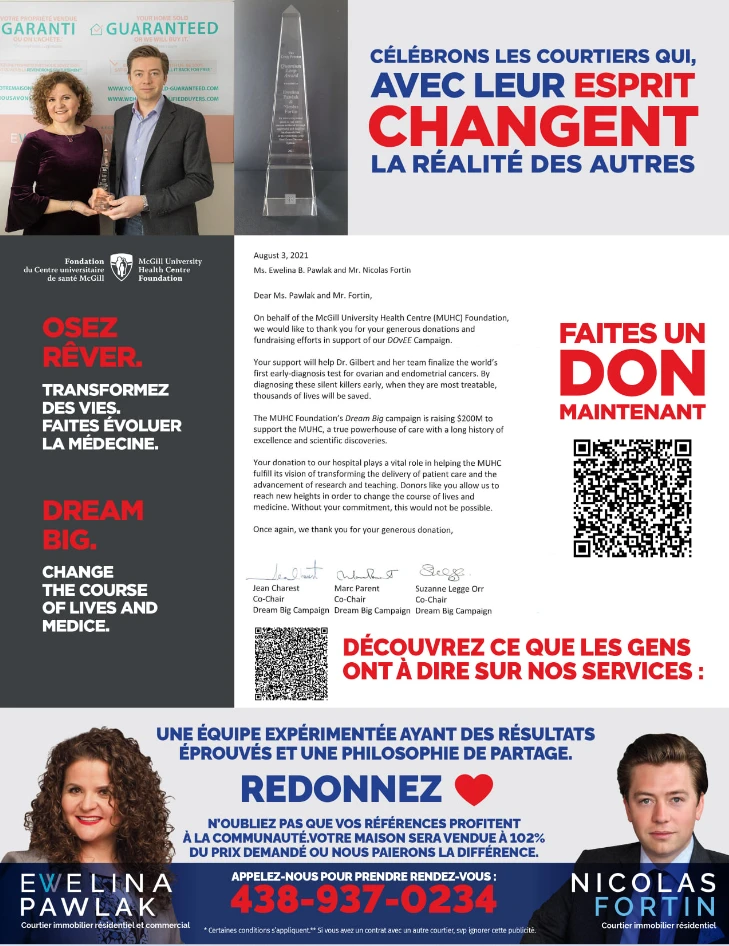 Lucie m.t. Lamontagne2024-02-28Il me fait énormément plaisir de vous relater mes expériences avec les courtiers Ewelina Pawlak et Nicolas Fortin. J’ai fait à date plus de 4 transactions immobilières dans différentes villes de la grande région de Montréal avec Mme Pawlak et plus récemment avec aussi M. Fortin. J’ai beaucoup apprécié leur professionnalisme et leurs conseils toujours éclairés dont je peux que me réjouir de les avoir suivis. Leur gentillesse, leur disponibilité et leur patience ont toujours été remarquables. Et leur compétence s’est manifestée autant dans tous les moyens utilisés pour diffuser adéquatement les informations, ainsi qu’à toutes les étapes des processus de vente ou d’achat selon le cas, même avec des clients potentiels que je pourrais qualifier de difficiles. Je continuerai à utiliser leurs services advenant une prochaine situation et je les recommande sans réserves. Lucie LamontagneTrustindex verifies that the original source of the review is Google.
